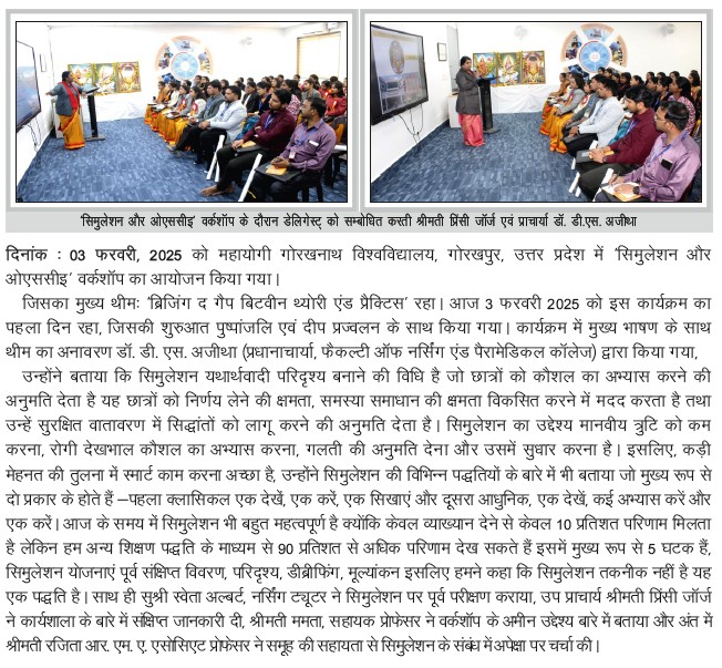 | फैकल्टी ऑफ नर्सिंग एंड पैरामेडिकल, में "सिमुलेशन एवं ओ.एस.सी.ई" वर्कशॉप का समापन समारोह | View | 09-Feb-2025 |