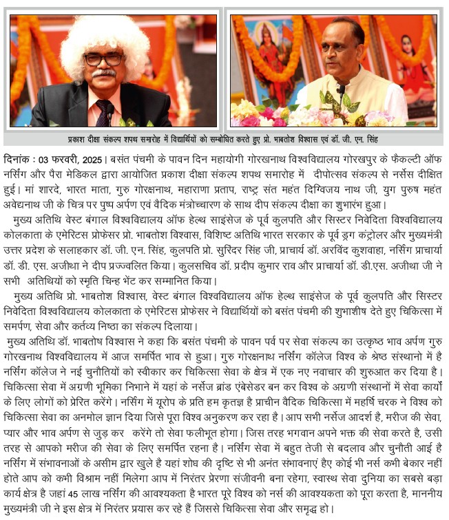 | नर्सिंग एवं पैरामेडिकल संकाय के नर्सिंग विभाग में बसंत पंचमी पर्व मनाया गया | View | 03-Feb-2025 |