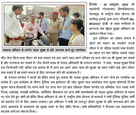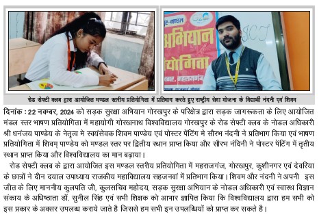 | सड़क सुरक्षा अभियान गोरखपुर के परिक्षेत्र द्वारा सड़क जागरूकता पर भाषण प्रतियोगिता | View | 22-Nov-2024 |