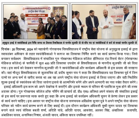 | राष्ट्रीय सेवा योजना की माता अनुसूईया इकाई के द्वारा स्वावलंबन अभियान | View | 20-Dec-2024 |
